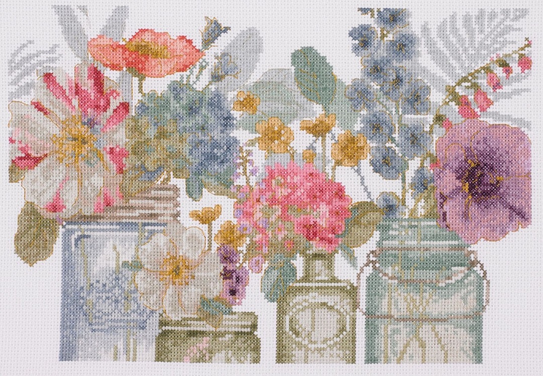 Rainbow Seeds Flowers X Counted Cross Stitch kit from the Watercolour Flower Art range designed by Lisa Audit. Level: Advanced. Kit includes DMC 6 Stranded Mouline thread, chart & instructions, 14ct Aida and Needle. Design size - 30 x 22cm (11.4" x 9.4")